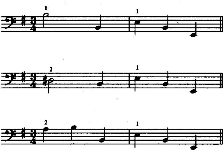 Задача. Впиши правильную аппликатуру: если октавные ходы играются _и_пальцами, то средний звук в кварто-квинтовом обороте играется _ пальцем. Сыграй эти кварто-квинтовые каденции верными пальцами и получи оценку.