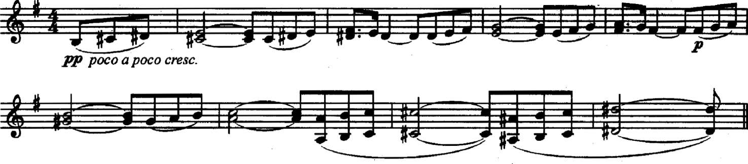 Ты, конечно, заметил, что один и тот же мотив здесь повторяется несколько раз, поднимаясь все выше и выше. Секвенция — повторение одного мелодического мотива на разной высоте. Если ты понял, как «устроено» первое звено секвенции, нужно просто повторять его от разных звуков. |